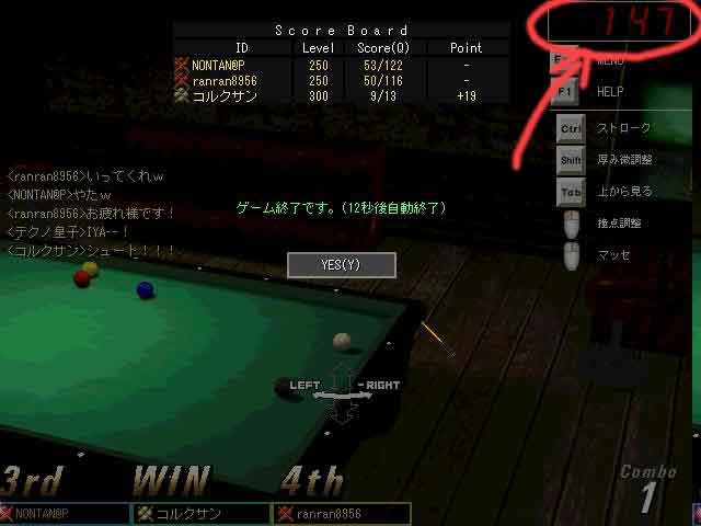 4人で始まった6ボールでしたが、最後に残ったranranとNONTANの二人の勝負がまったくつかず・・・